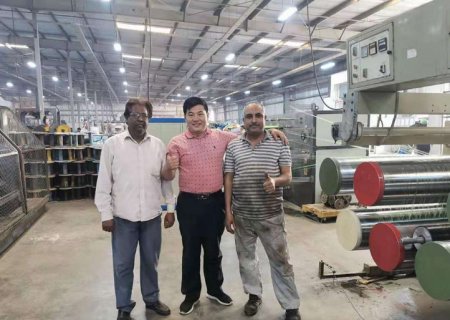 2019年12月,鲁普耐特机械公司高级工程师赶赴沙特为客户安装调试拉丝机、制绳机、钩针机等绳网设备,绳网设备顺利安装,