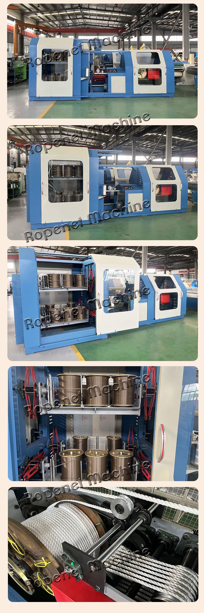 M系列制绳机 适用于将各种塑料圆丝、扁丝,单丝、棉、麻、纤维丝束等制成无接头绳子。广泛应用于工农业、渔业等领域。集制股与成绳为一体,从而大大提高了生产效率。减少了制股到制绳的工作程序,无废丝,废料产生,而且所制绳索更加美观耐用。设备装有长度计数器和门开自停装置。可根据客户需要,做成任意长度的绳子。