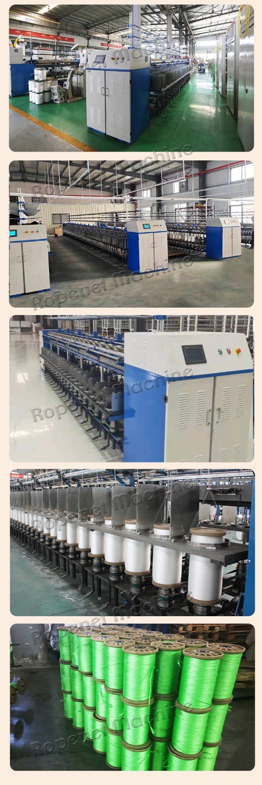 本设备可捻制不同规格的PP、PE、PET、PA、复丝纤维、棉纱,单股或多股的初、复捻纱线,广泛应用于绳、网、线、带、窗帘织物、建筑用线、电缆填充纱线、地毯线等领域。设备采用PLC控制系统,可方便调整设备的捻度、捻向、速度和成型形状。该设备具有高效率、高产量、经济耐用等特点;